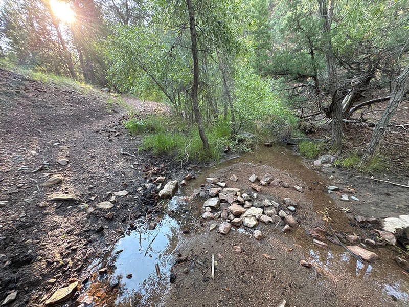 Little Tesuque Creek, near Junction D of the Dale Ball Trails. S1-4 of the thru-hike. Not a lot of water, but it’s still wet.