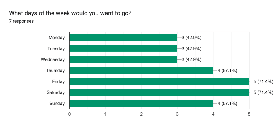 Friday and Saturday are the top choices for the day of the week.